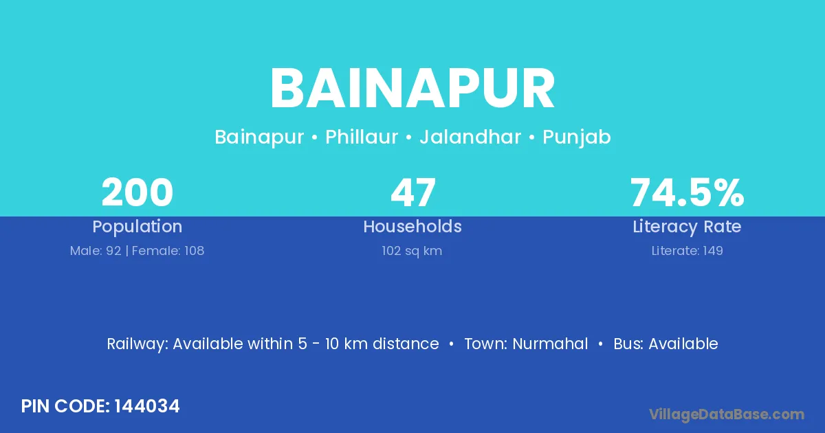 Nurmahal is the nearest town to Bainapur village for major economic activities