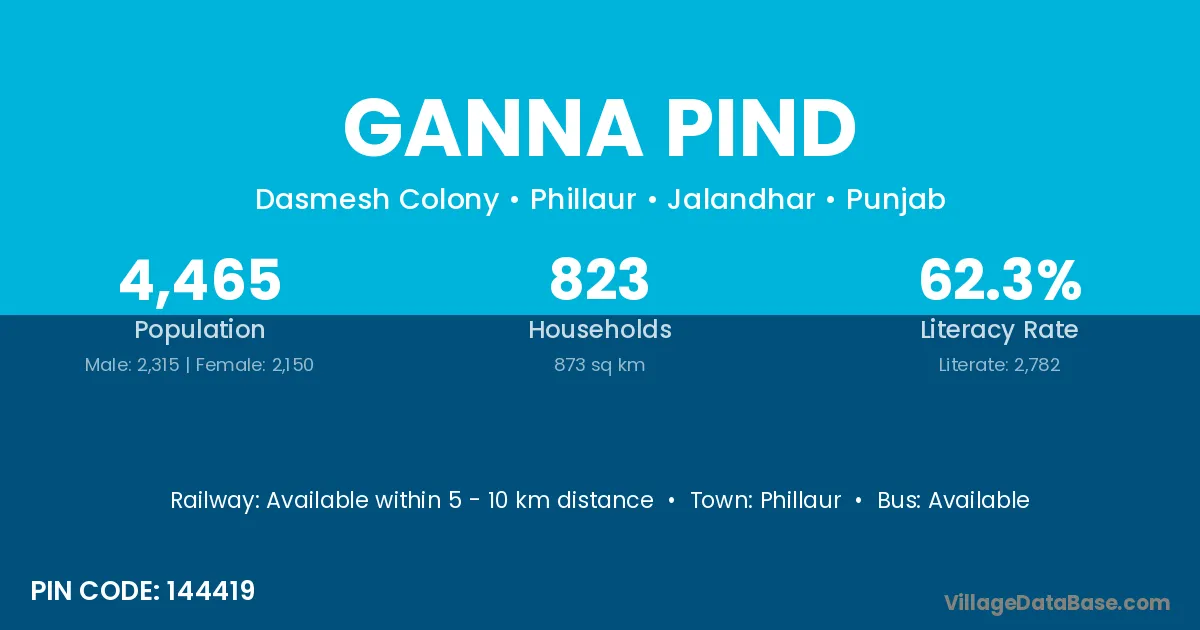 Phillaur is the nearest town to Ganna Pind village for major economic activities