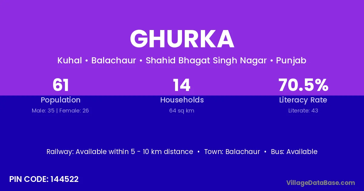 There are approximately 627 households in Ghurka village.