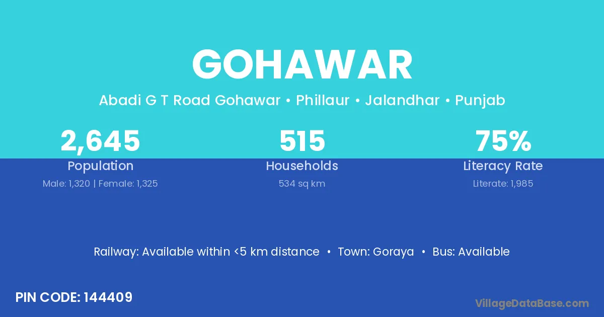 Gohawar village has a total population of 2,645 people, of which 1,320 are males and 1,325 are females.