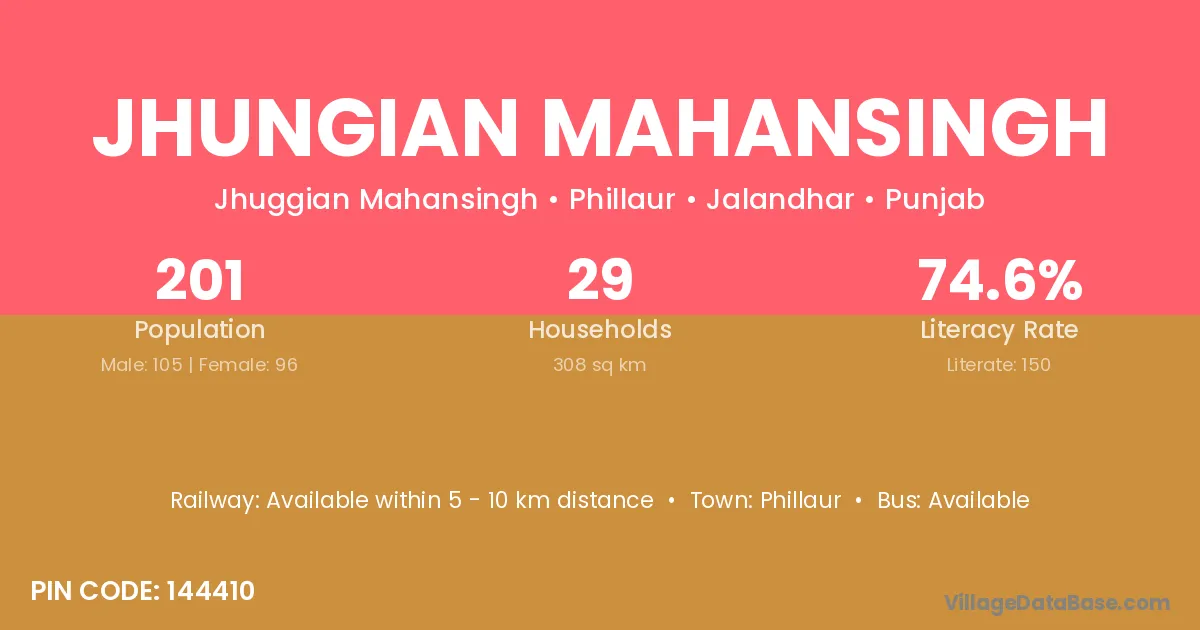 Phillaur is the nearest town to Jhungian Mahansingh village for major economic activities