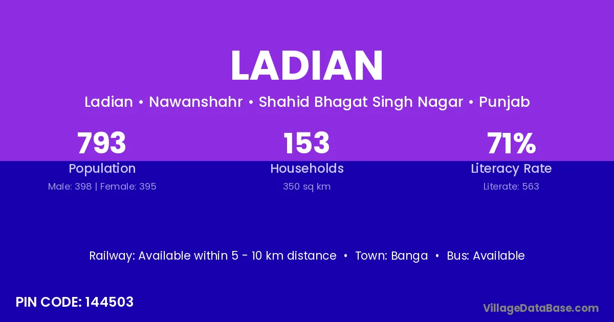 According to Census 2011 information, the village code of Ladian village is 144418.