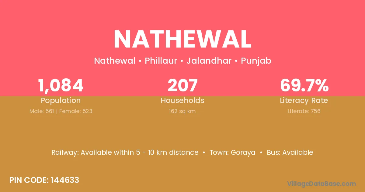 Goraya is the nearest town to Nathewal village for major economic activities