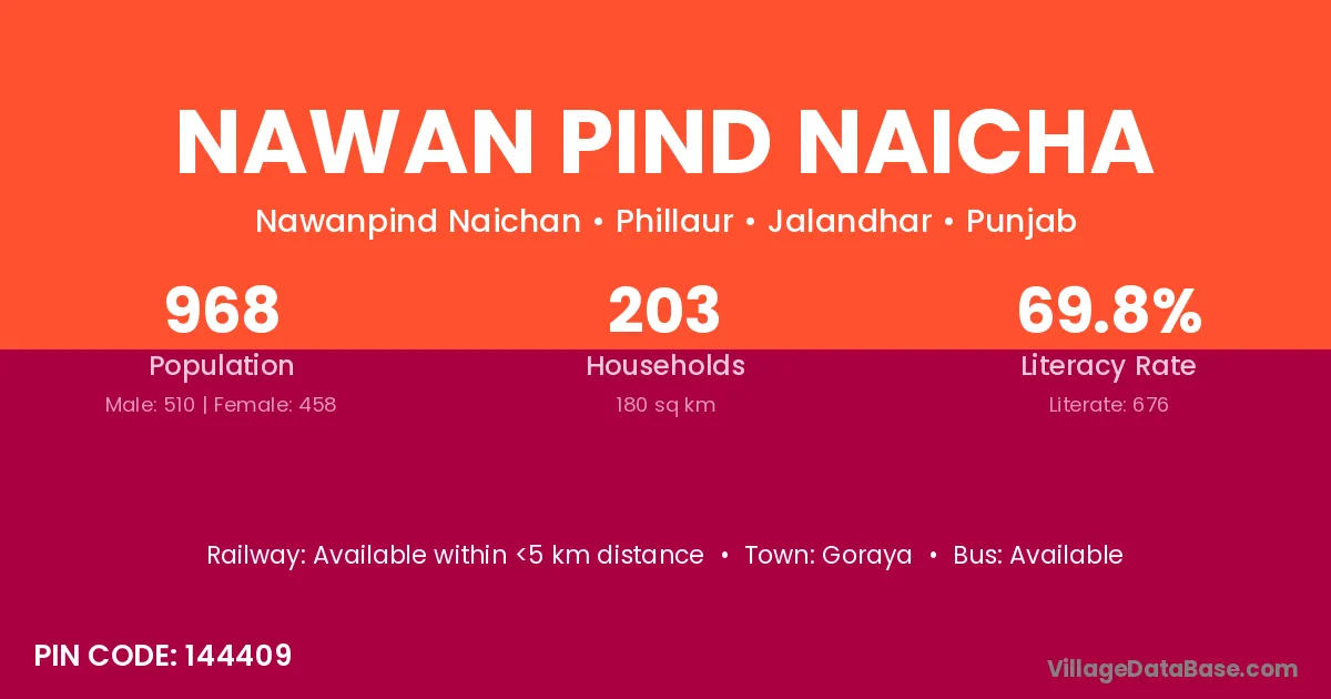 There are approximately 203 households in Nawan Pind Naicha village.