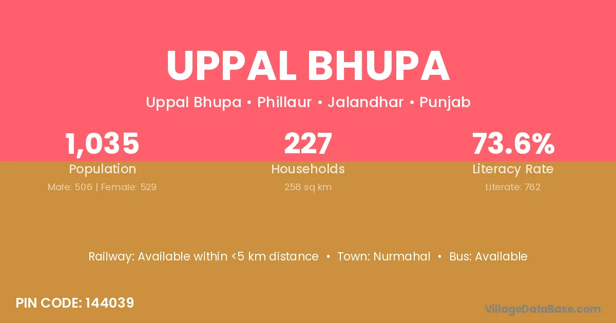 According to Census 2011 information, the village code of Uppal Bhupa village is 144039.