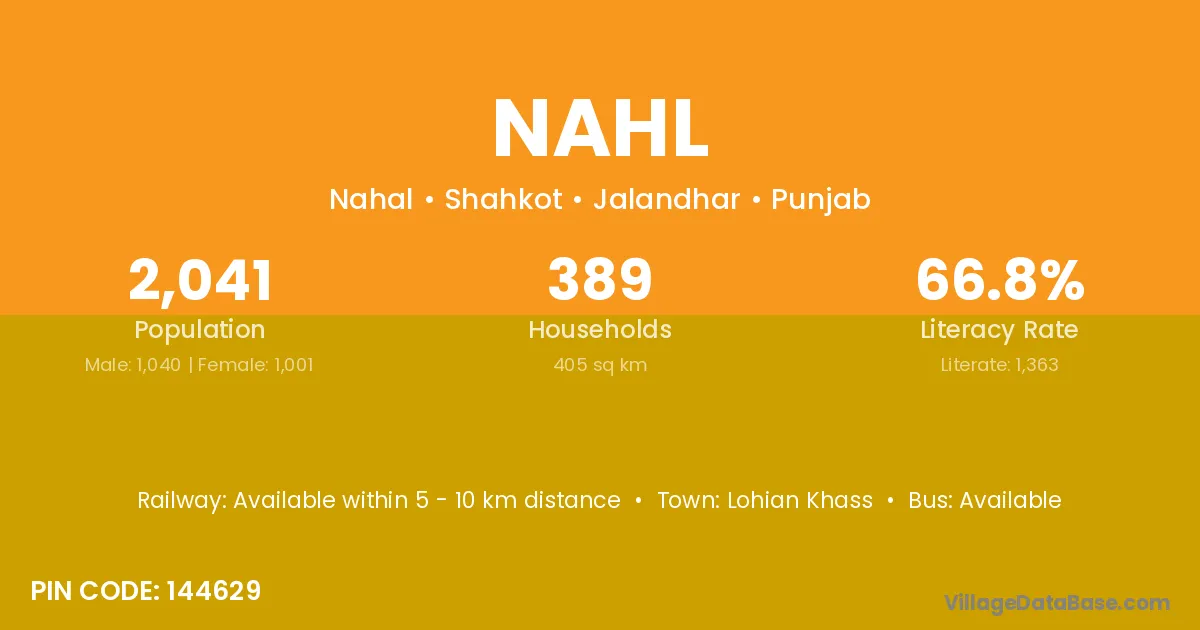 According to Census 2011 information, the village code of Nahl village is 144629.