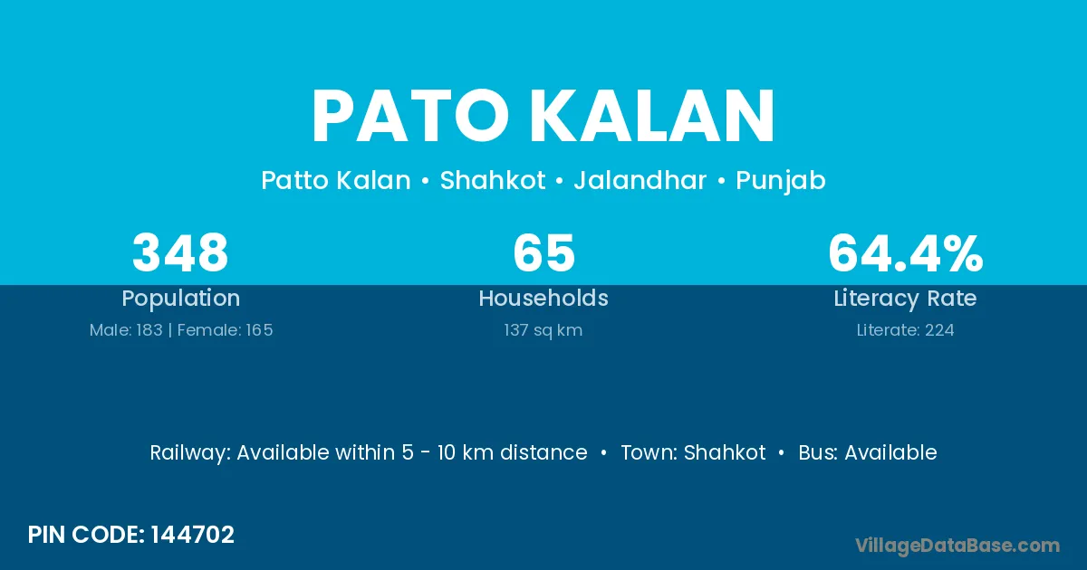 Shahkot is the nearest town to Pato Kalan village for major economic activities