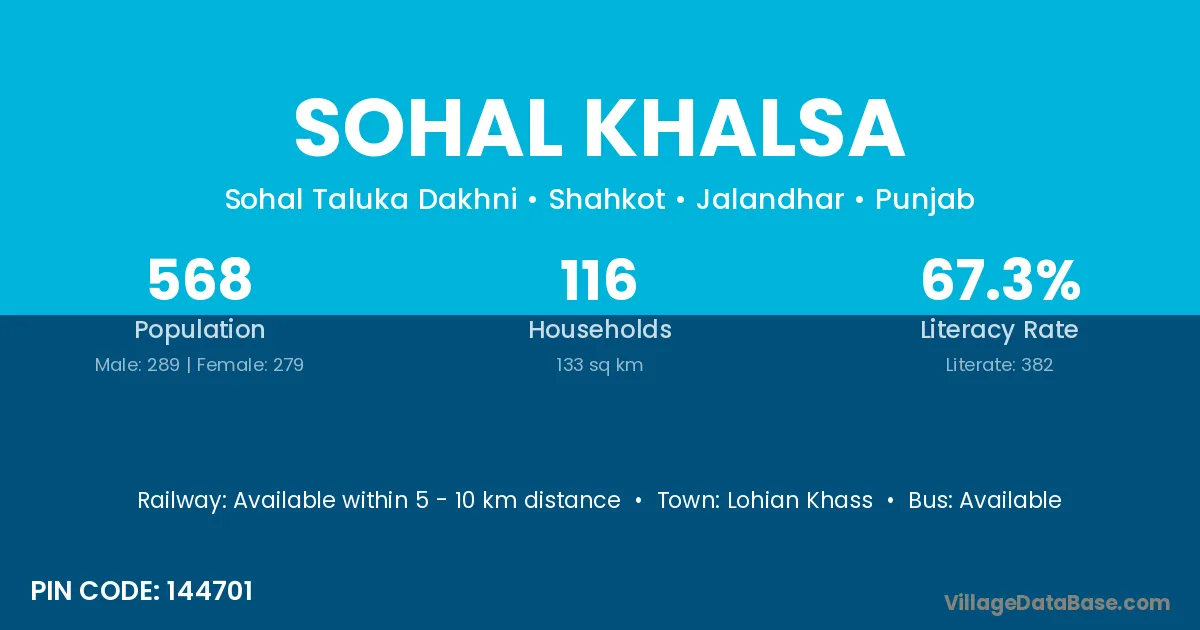 Lohian Khass is the nearest town to Sohal Khalsa village for major economic activities