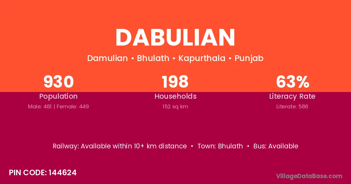 Bhulath is the nearest town to Dabulian village for major economic activities