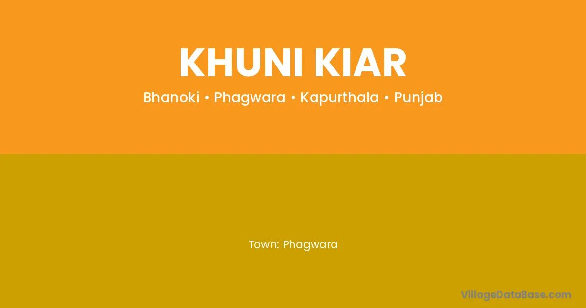 Phagwara is the nearest town to Khuni Kiar village for major economic activities