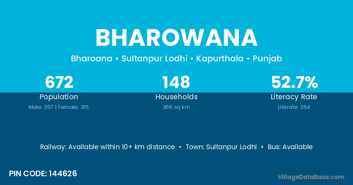 Sultanpur Lodhi is the nearest town to Bharowana village for major economic activities