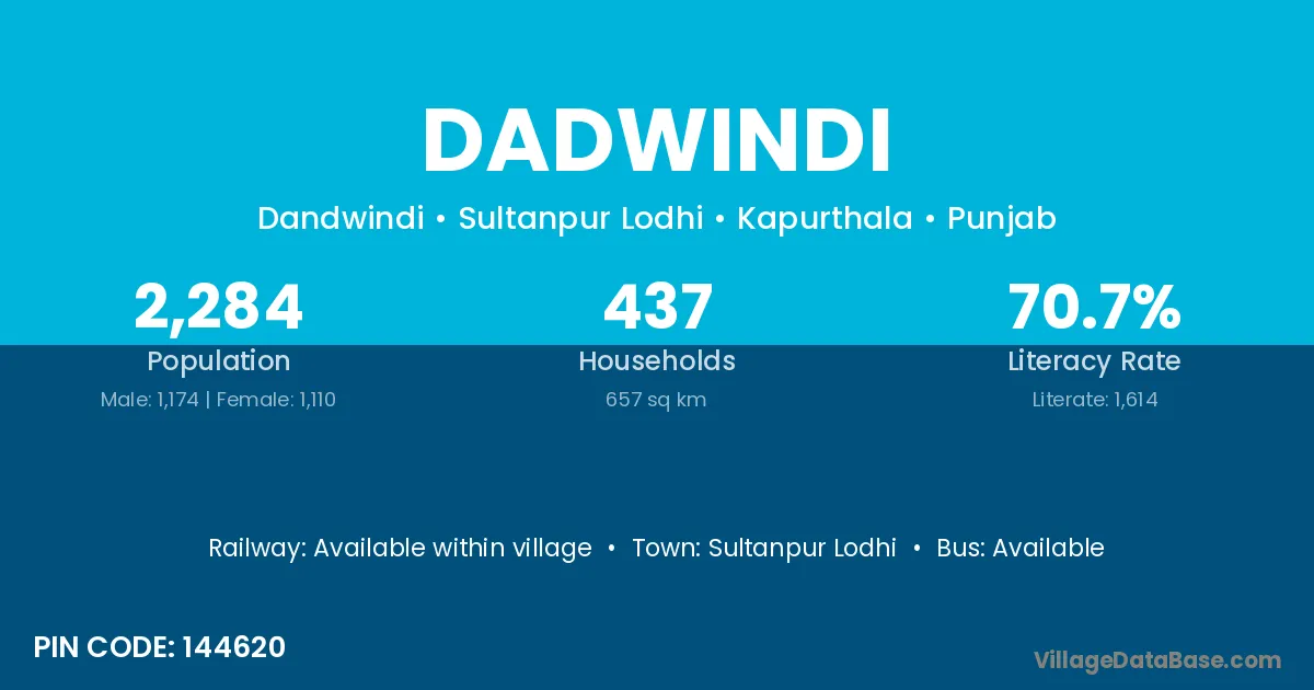 Sultanpur Lodhi is the nearest town to Dadwindi village for major economic activities