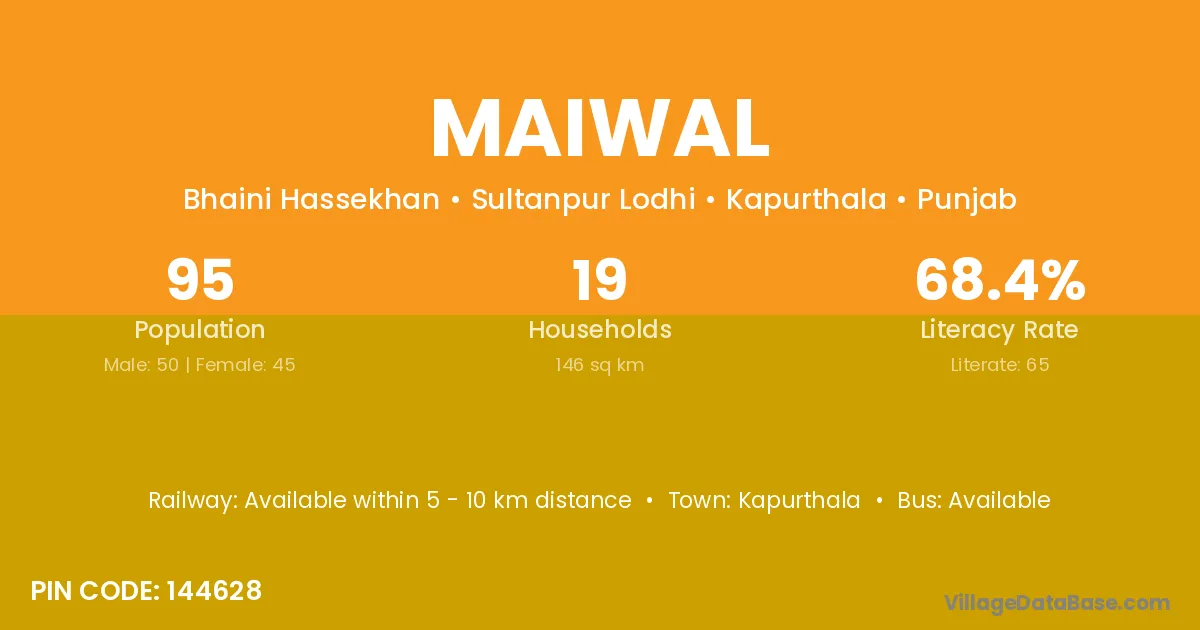 Kapurthala is the nearest town to Maiwal village for major economic activities