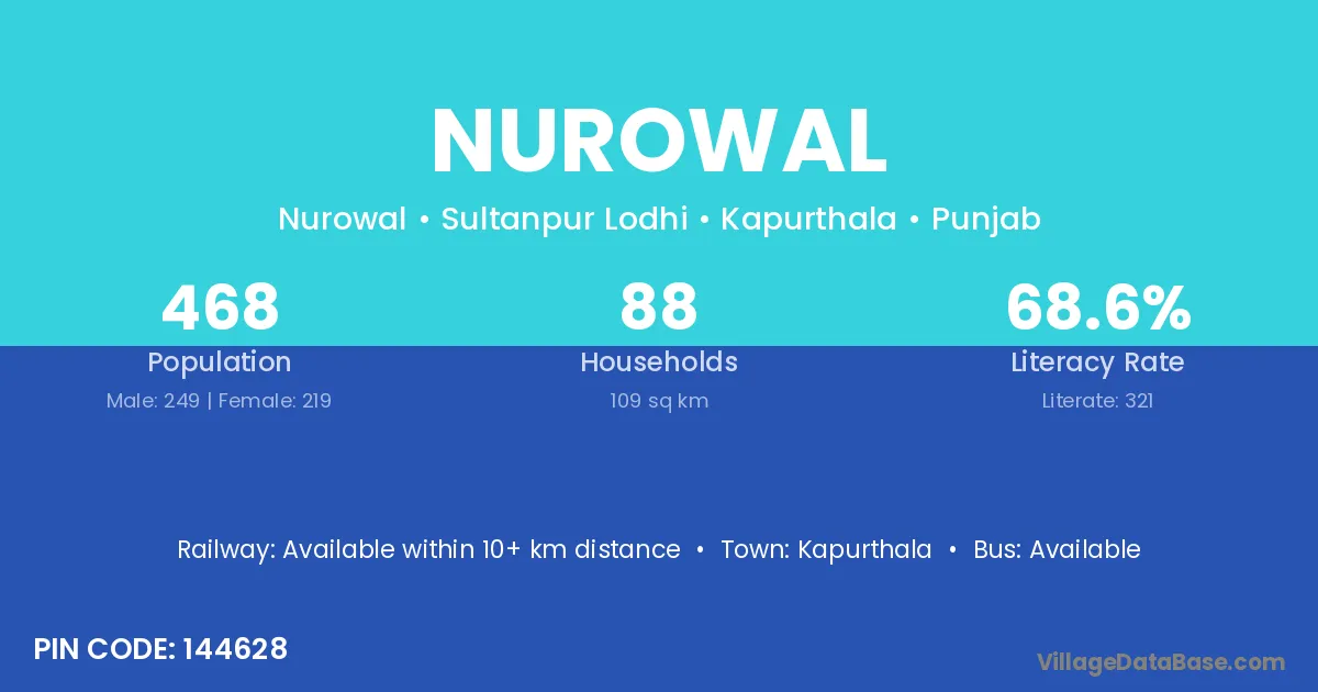 Nurowal village has a total population of 468 people, of which 249 are males and 219 are females.