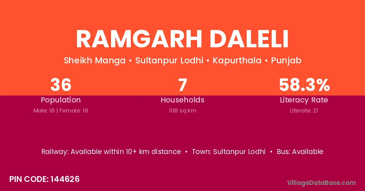 Sultanpur Lodhi is the nearest town to Ramgarh Daleli village for major economic activities