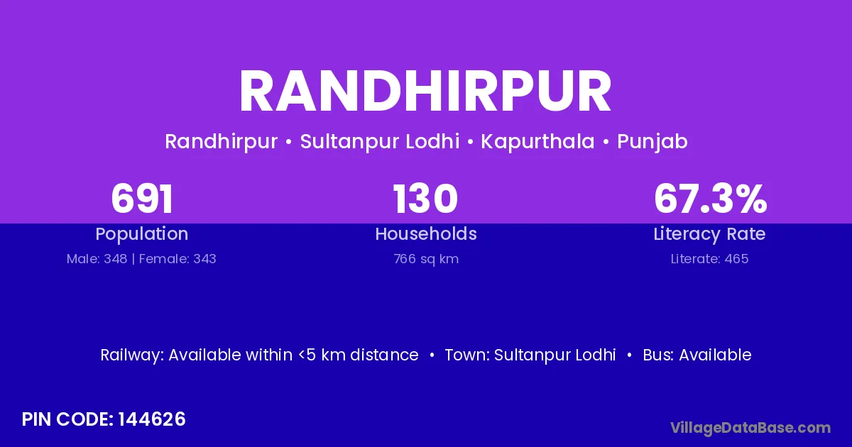 Sultanpur Lodhi is the nearest town to Randhirpur village for major economic activities