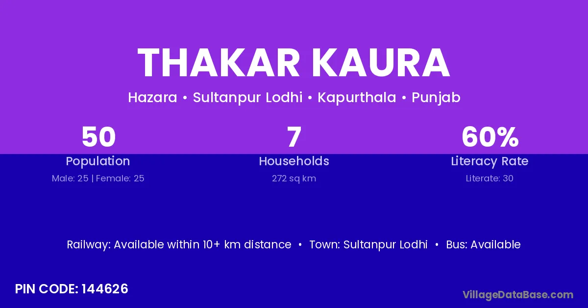 Sultanpur Lodhi is the nearest town to Thakar Kaura village for major economic activities
