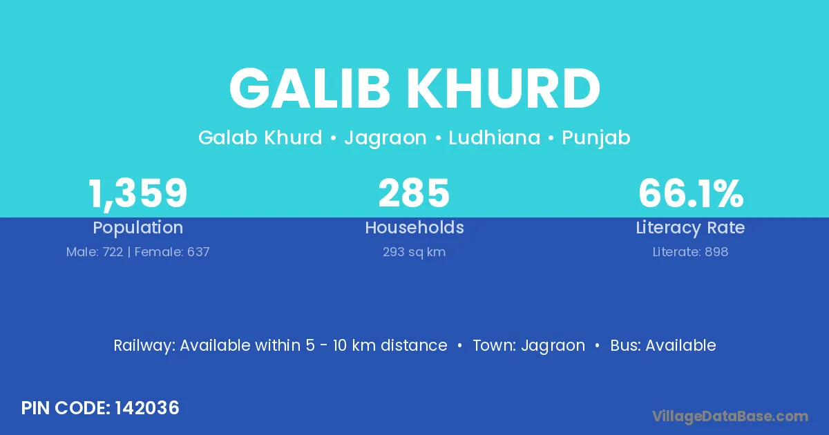 Jagraon is the nearest town to Galib Khurd village for major economic activities