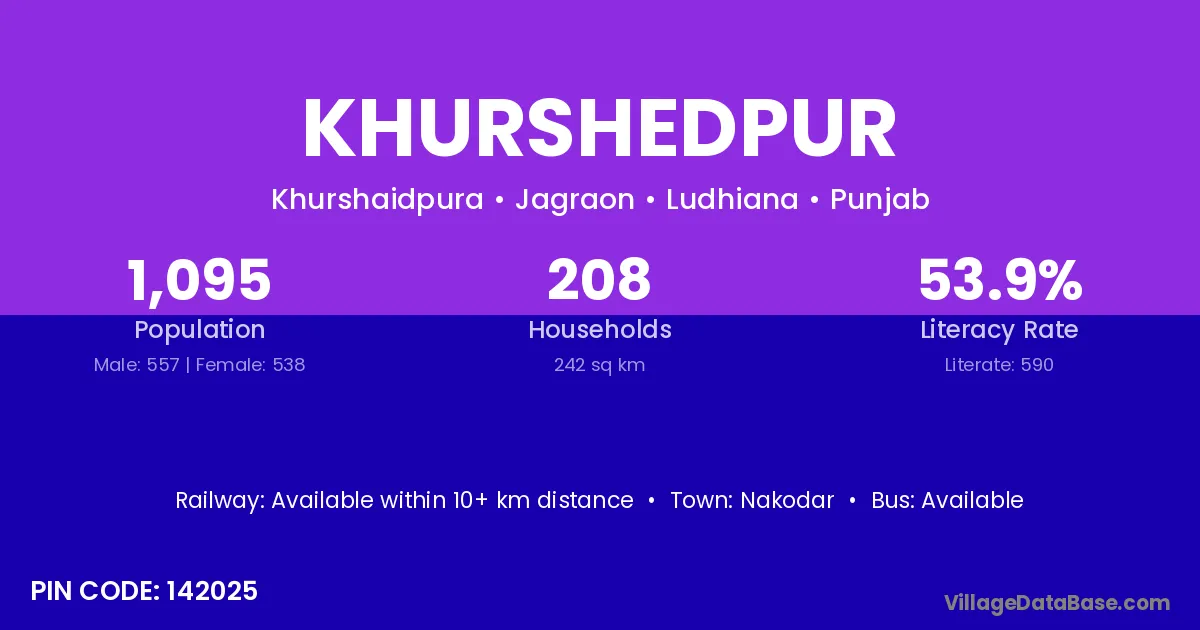 There are approximately 208 households in Khurshedpur village.