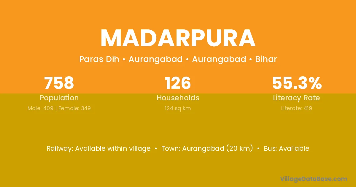 According to Census 2011 information, the village code of Madarpura village is 142033.
