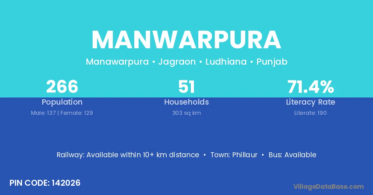 Phillaur is the nearest town to Manwarpura village for major economic activities