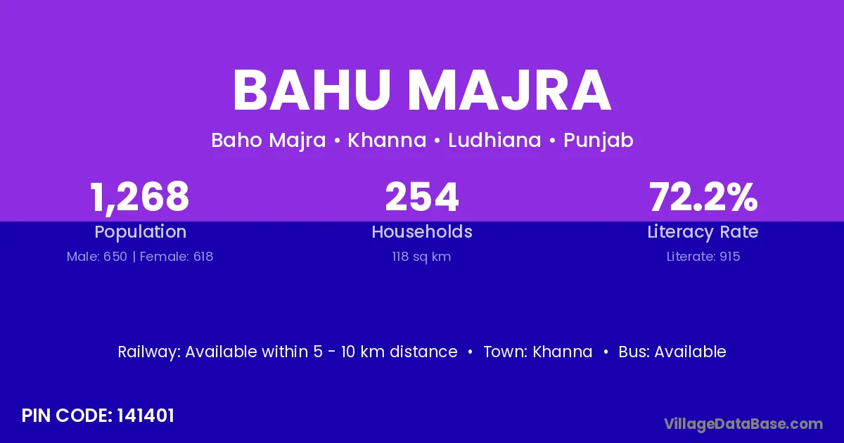 Khanna is the nearest town to Bahu Majra village for major economic activities