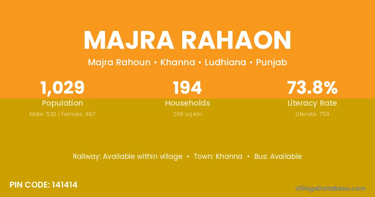 Khanna is the nearest town to Majra Rahaon village for major economic activities