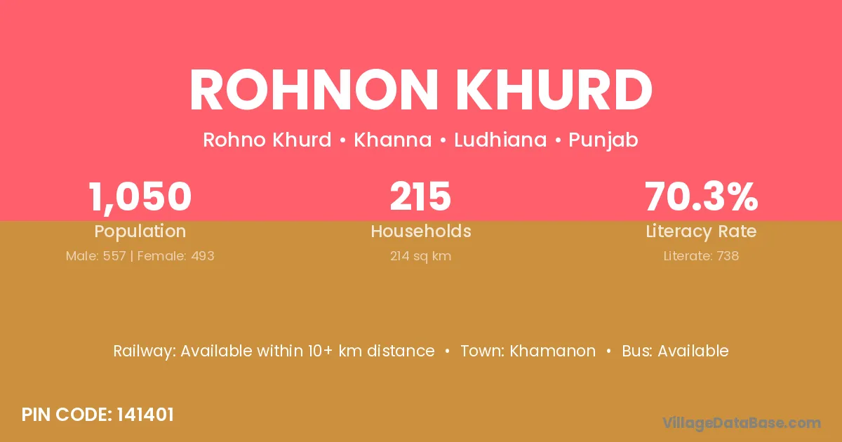Khamanon is the nearest town to Rohnon Khurd village for major economic activities