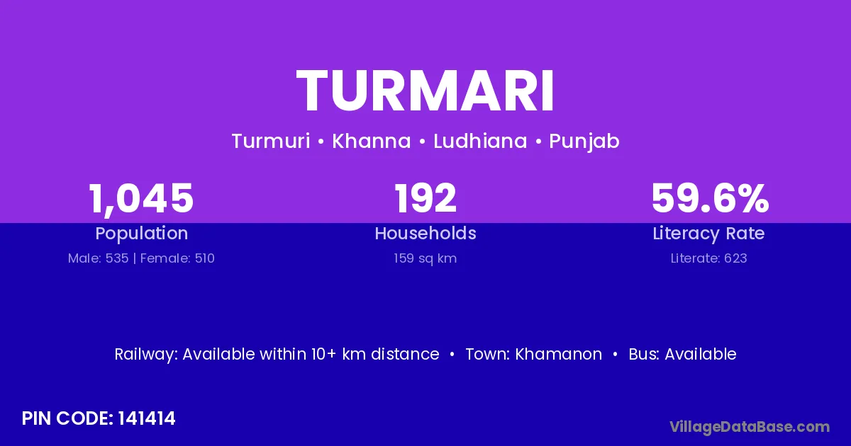 Turmari village has a total population of 1,045 people, of which 535 are males and 510 are females.