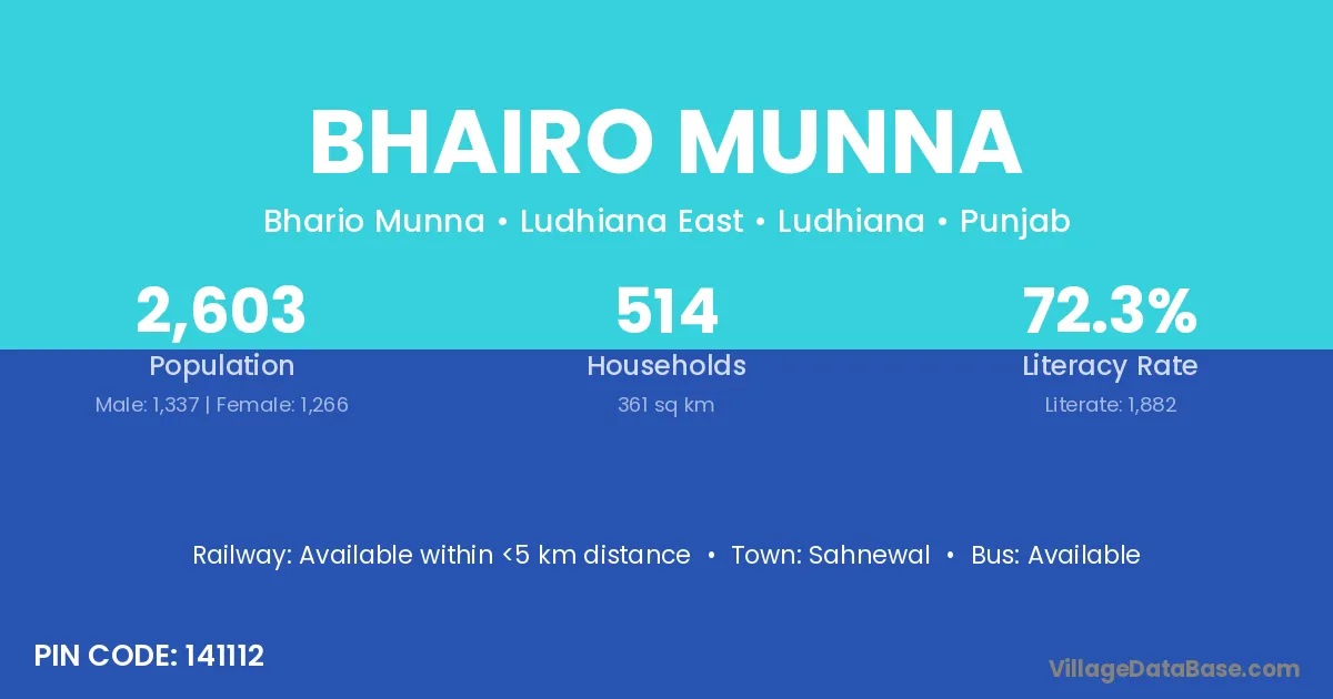 Sahnewal is the nearest town to Bhairo Munna village for major economic activities