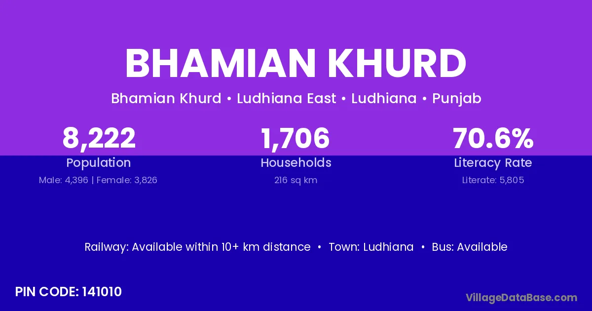 Ludhiana is the nearest town to Bhamian Khurd village for major economic activities