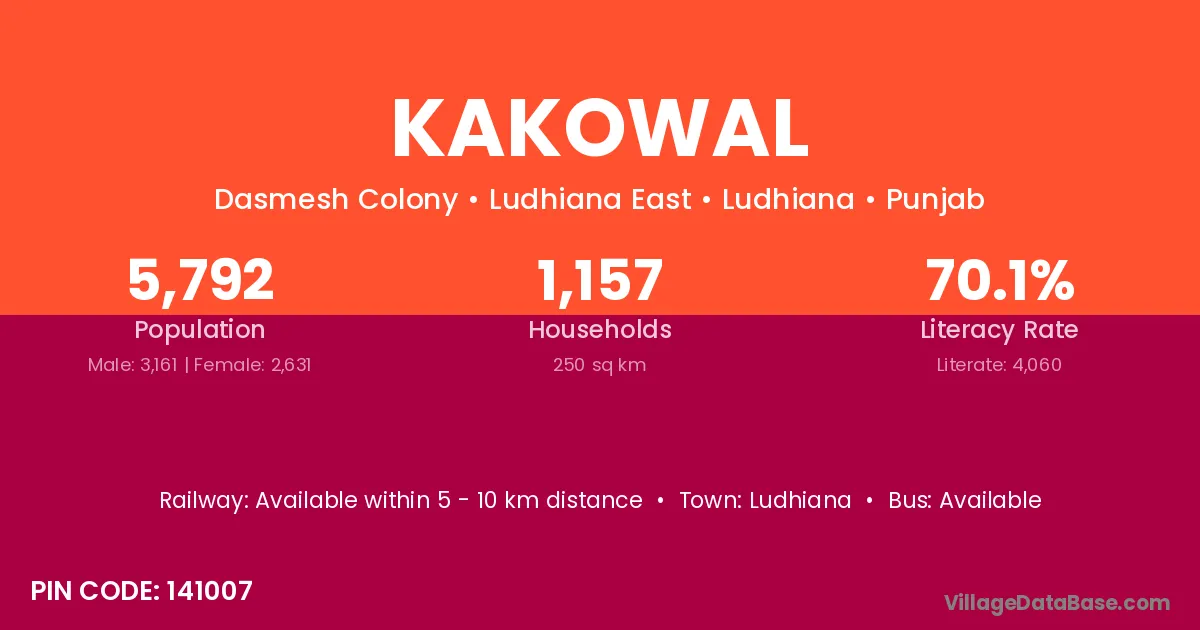 There are approximately 1,157 households in Kakowal village.