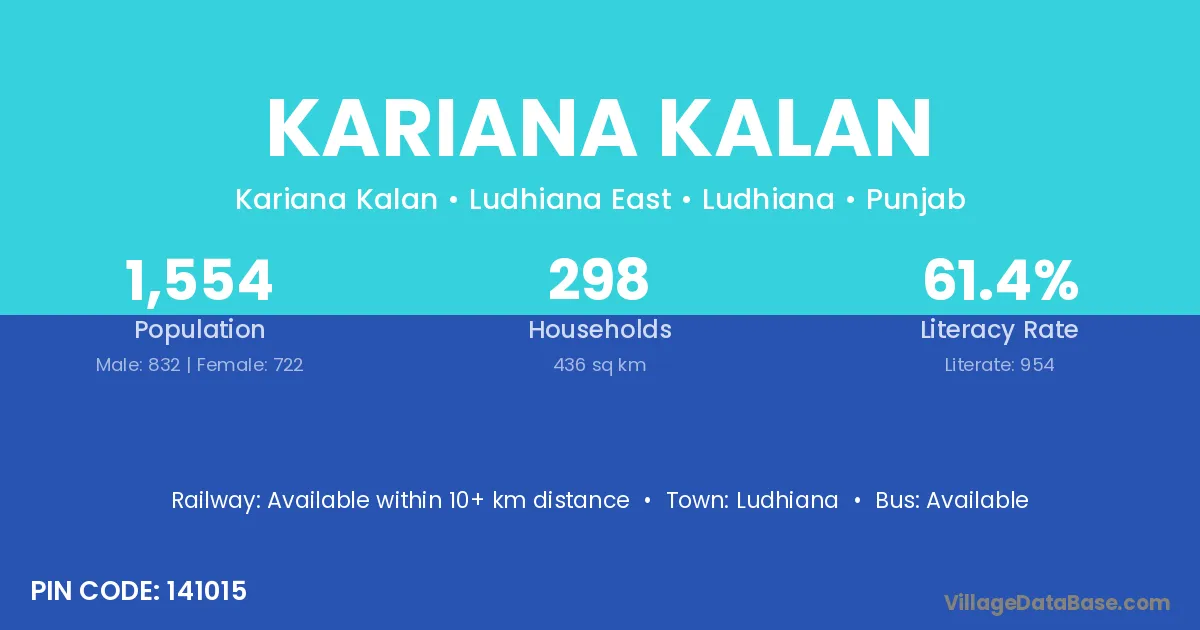 Ludhiana is the nearest town to Kariana Kalan village for major economic activities