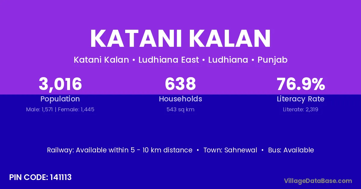 According to Census 2011 information, the village code of Katani Kalan village is 141113.