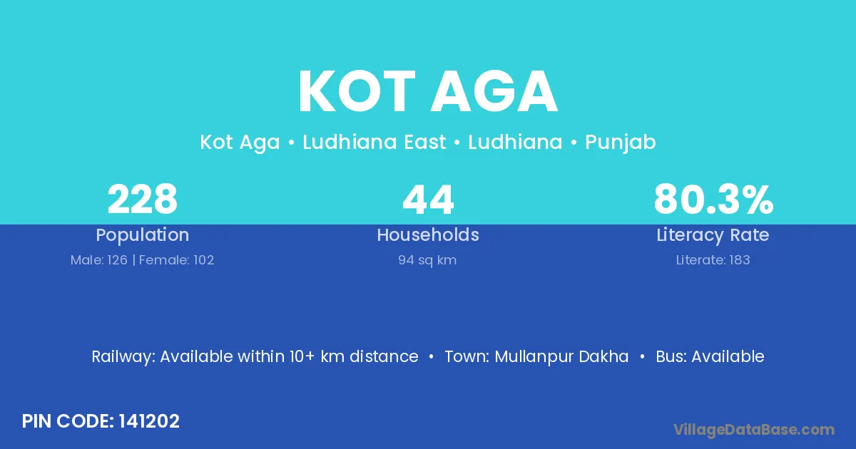 According to Census 2011 information, the village code of Kot Aga village is 141202.