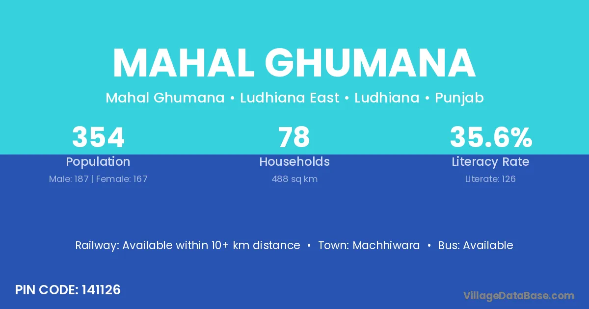 Machhiwara is the nearest town to Mahal Ghumana village for major economic activities