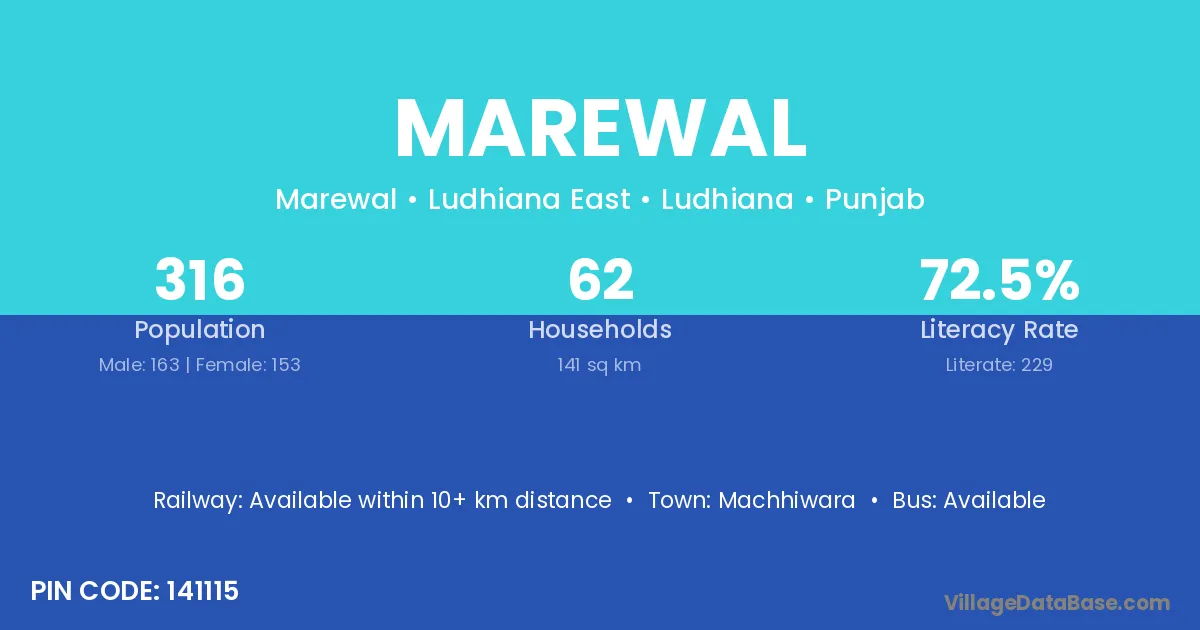 Marewal village has a total population of 316 people, of which 163 are males and 153 are females.