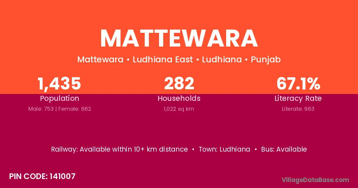 Ludhiana is the nearest town to Mattewara village for major economic activities