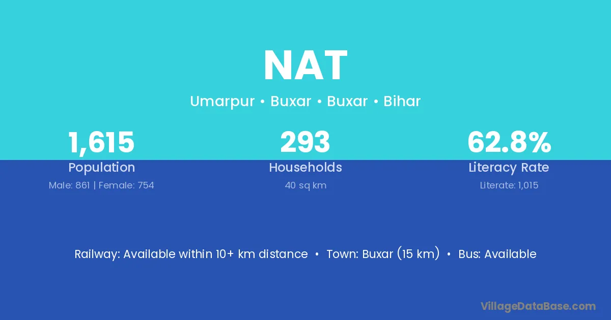 The literacy rate of Nat village is 75.19%. Male literacy stands at 79.07% and female literacy at 70.90%.