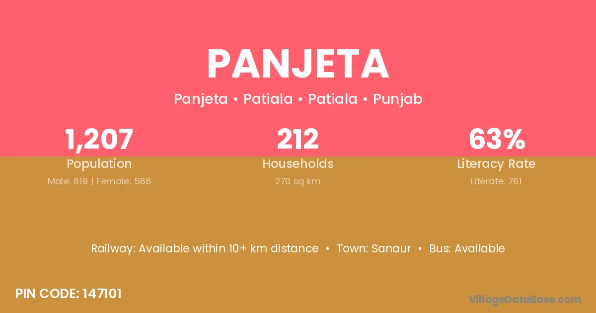 According to Census 2011 information, the village code of Panjeta village is 141126.