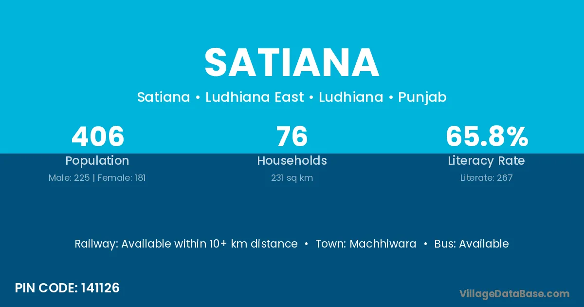 Satiana village has a total population of 406 people, of which 225 are males and 181 are females.