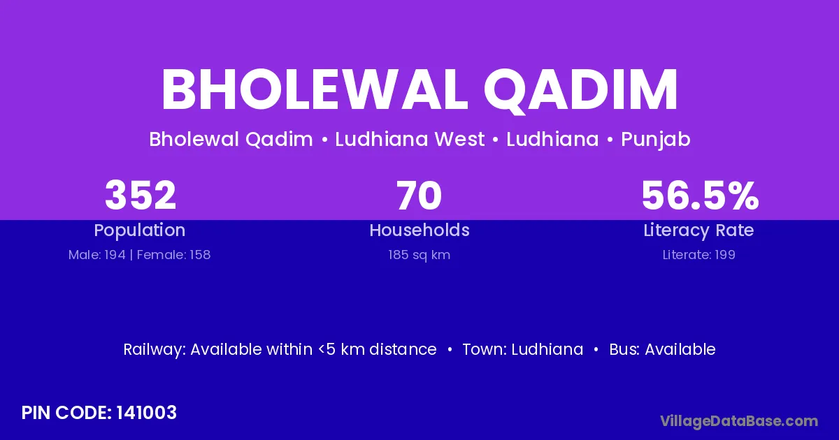 Ludhiana is the nearest town to Bholewal Qadim village for major economic activities