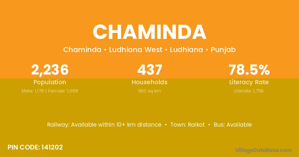 Chaminda village has a total population of 2,236 people, of which 1,178 are males and 1,058 are females.