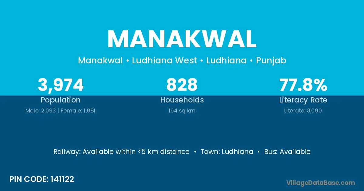 Ludhiana is the nearest town to Manakwal village for major economic activities