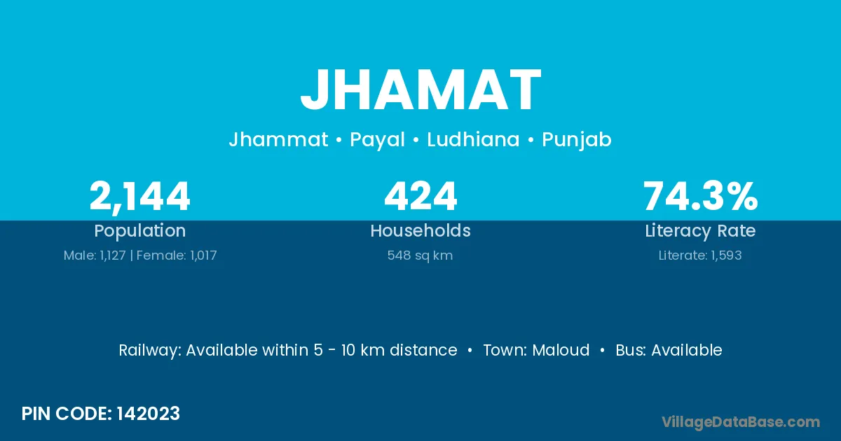 According to Census 2011 information, the village code of Jhamat village is 142023.