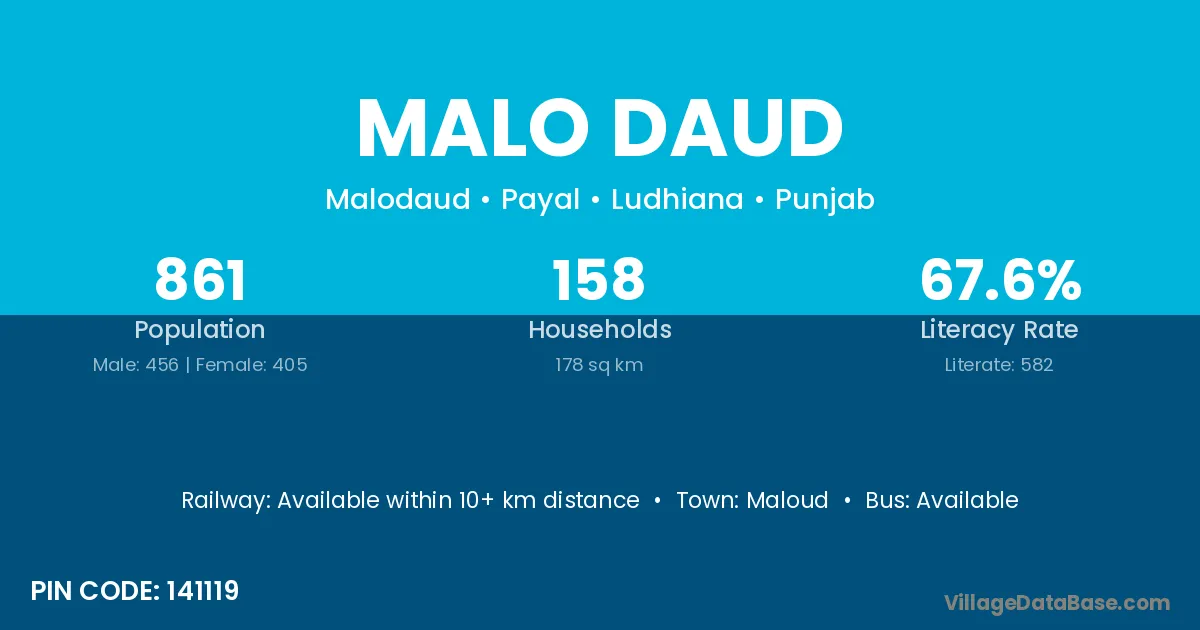 Malo Daud village has a total population of 861 people, of which 456 are males and 405 are females.