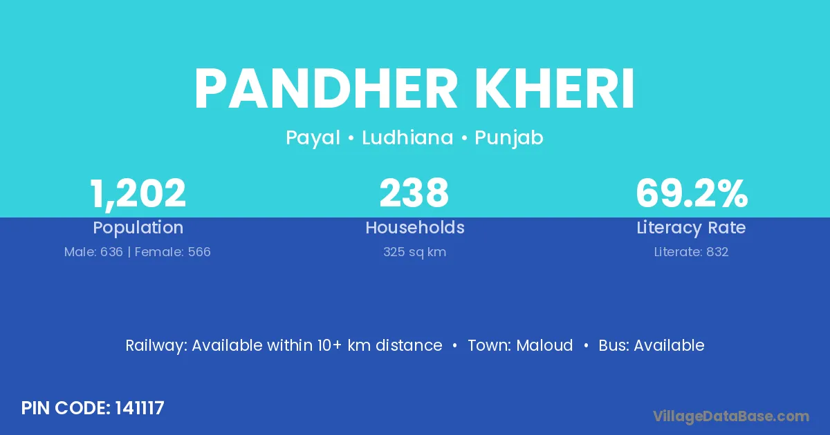 According to Census 2011 information, the village code of Pandher Kheri village is 141117.