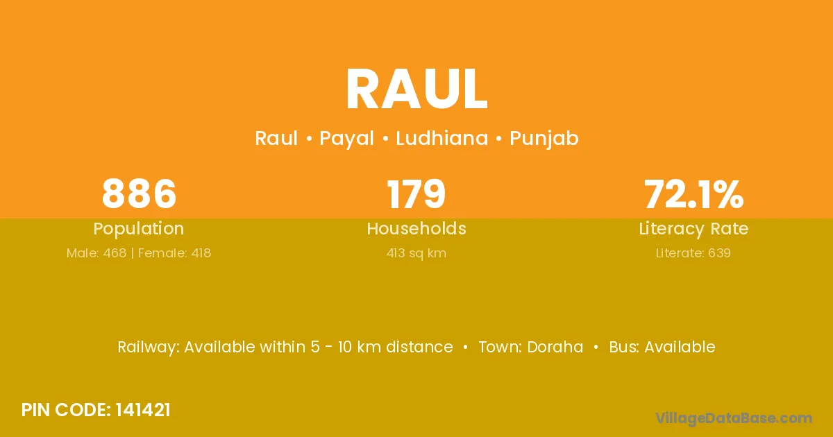 According to Census 2011 information, the village code of Raul village is 141421.