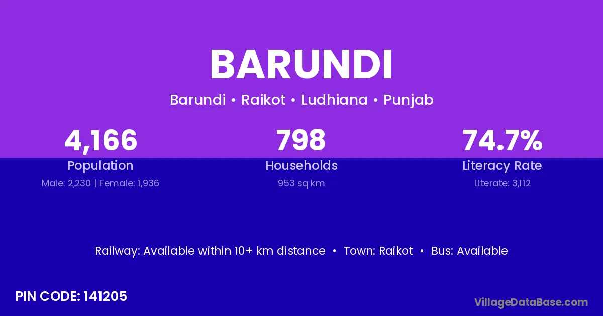Raikot is the nearest town to Barundi village for major economic activities