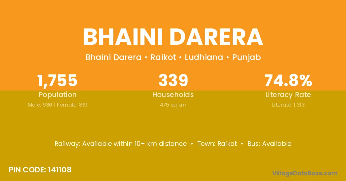 There are approximately 339 households in Bhaini Darera village.